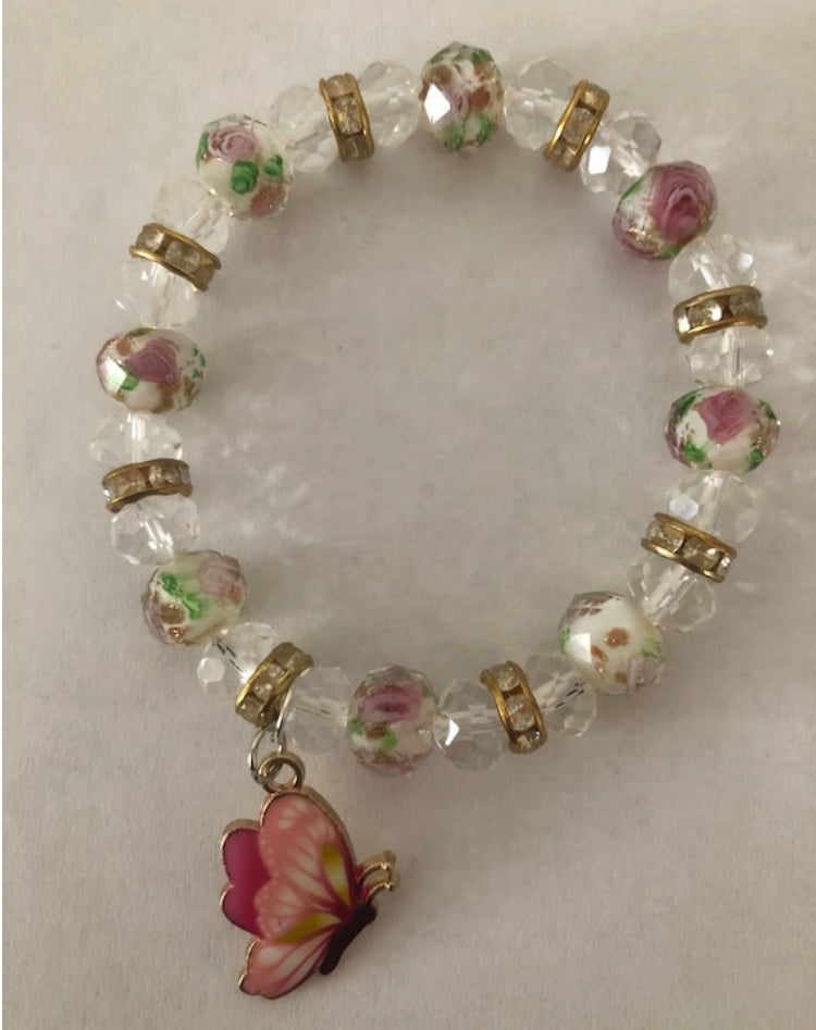 1 bracelet with flower crystal beads and butterfly charm (length: 7 inches)