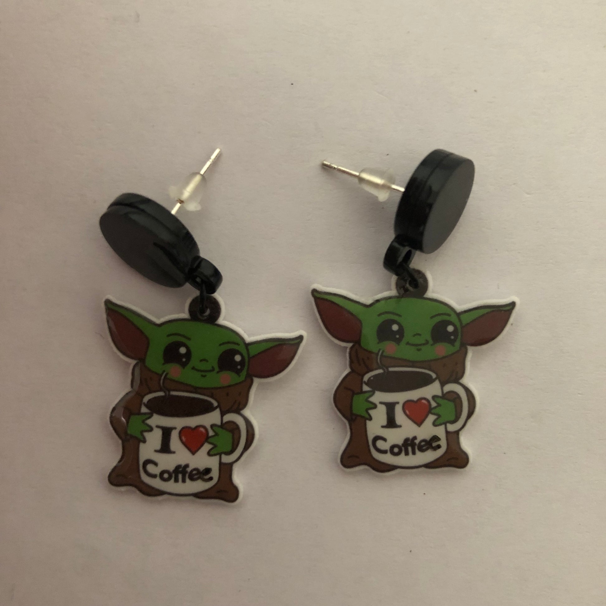 I love coffee Baby Yoda earrings