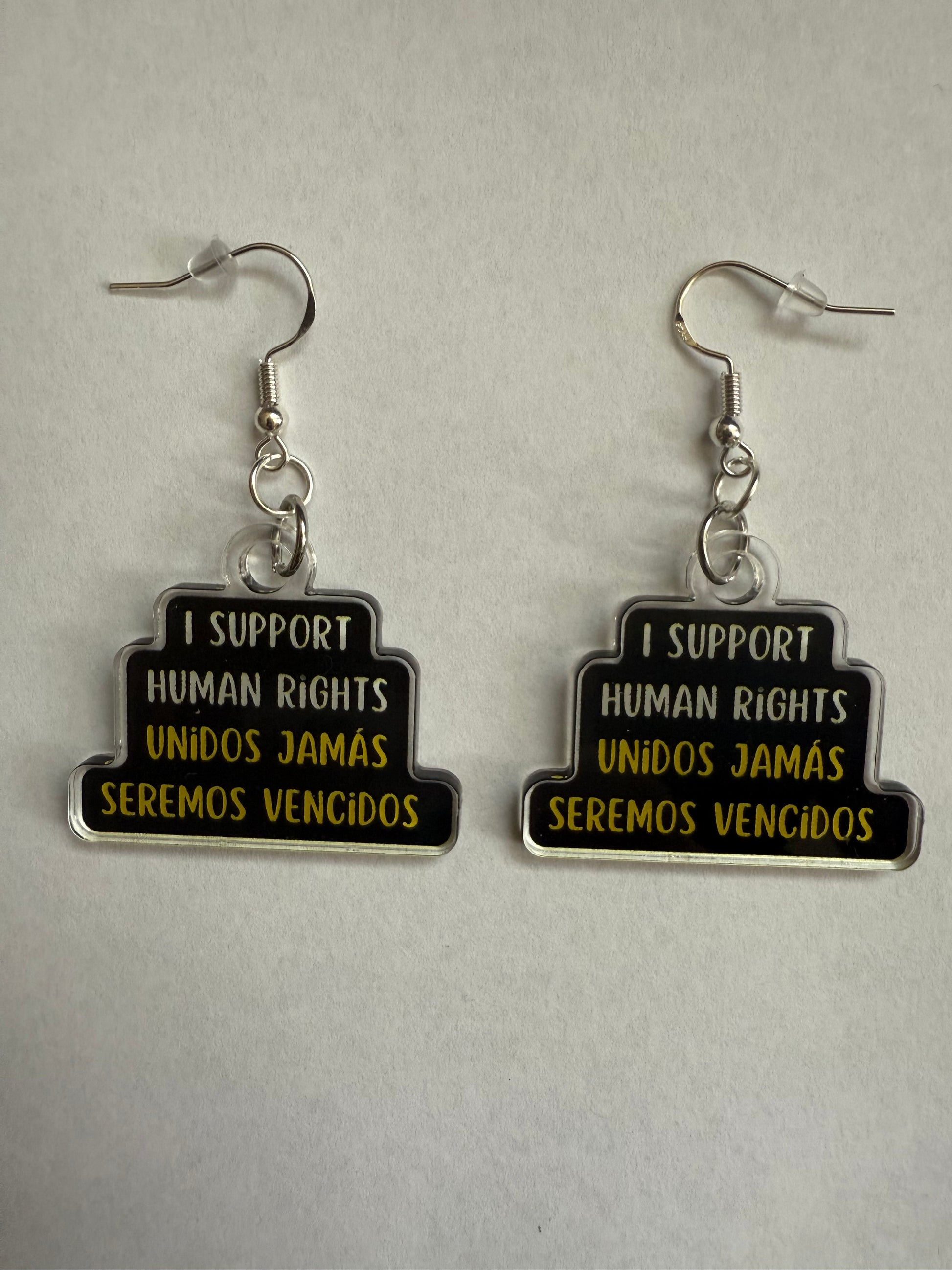 I support human rights Unidos jamás seremos vencidos earrings