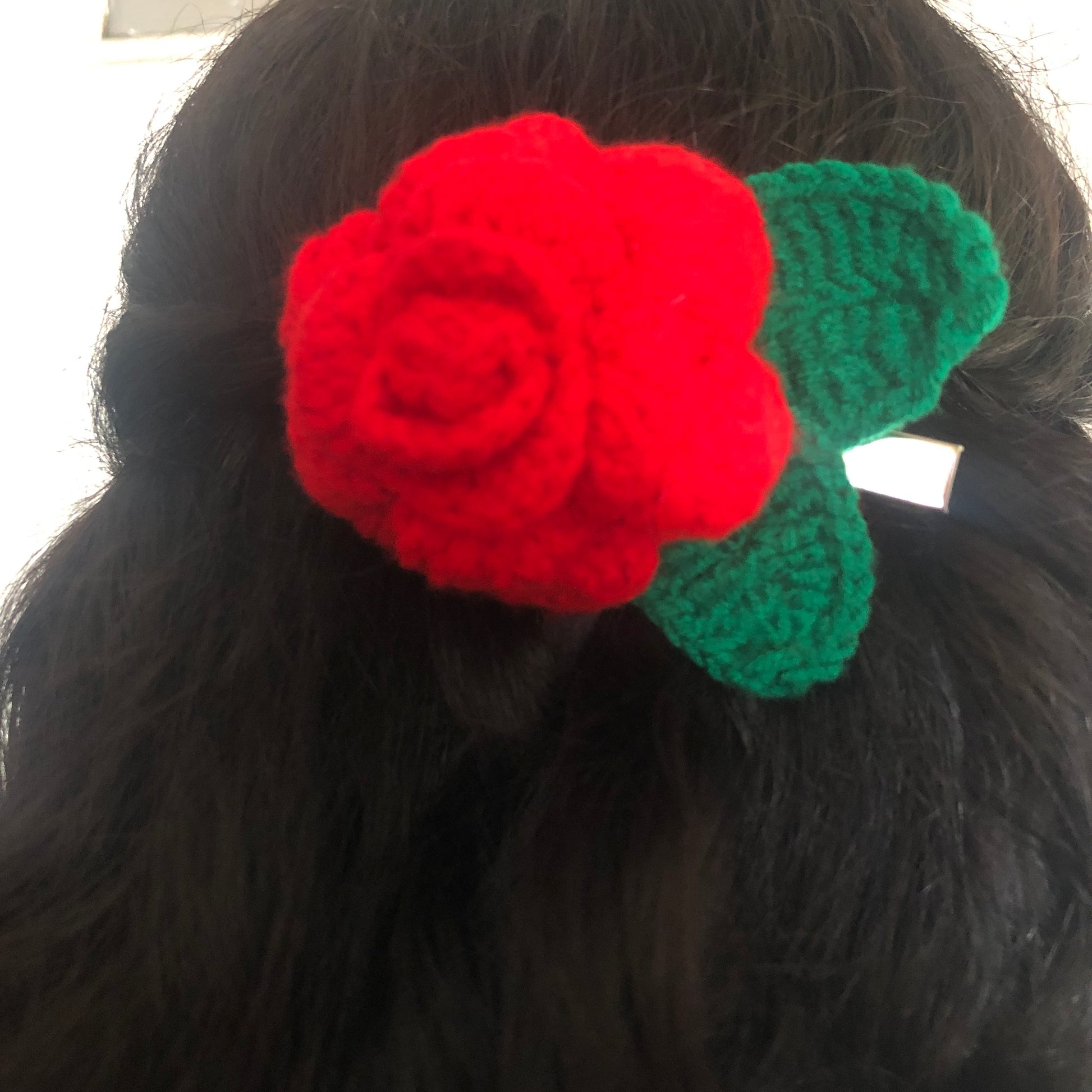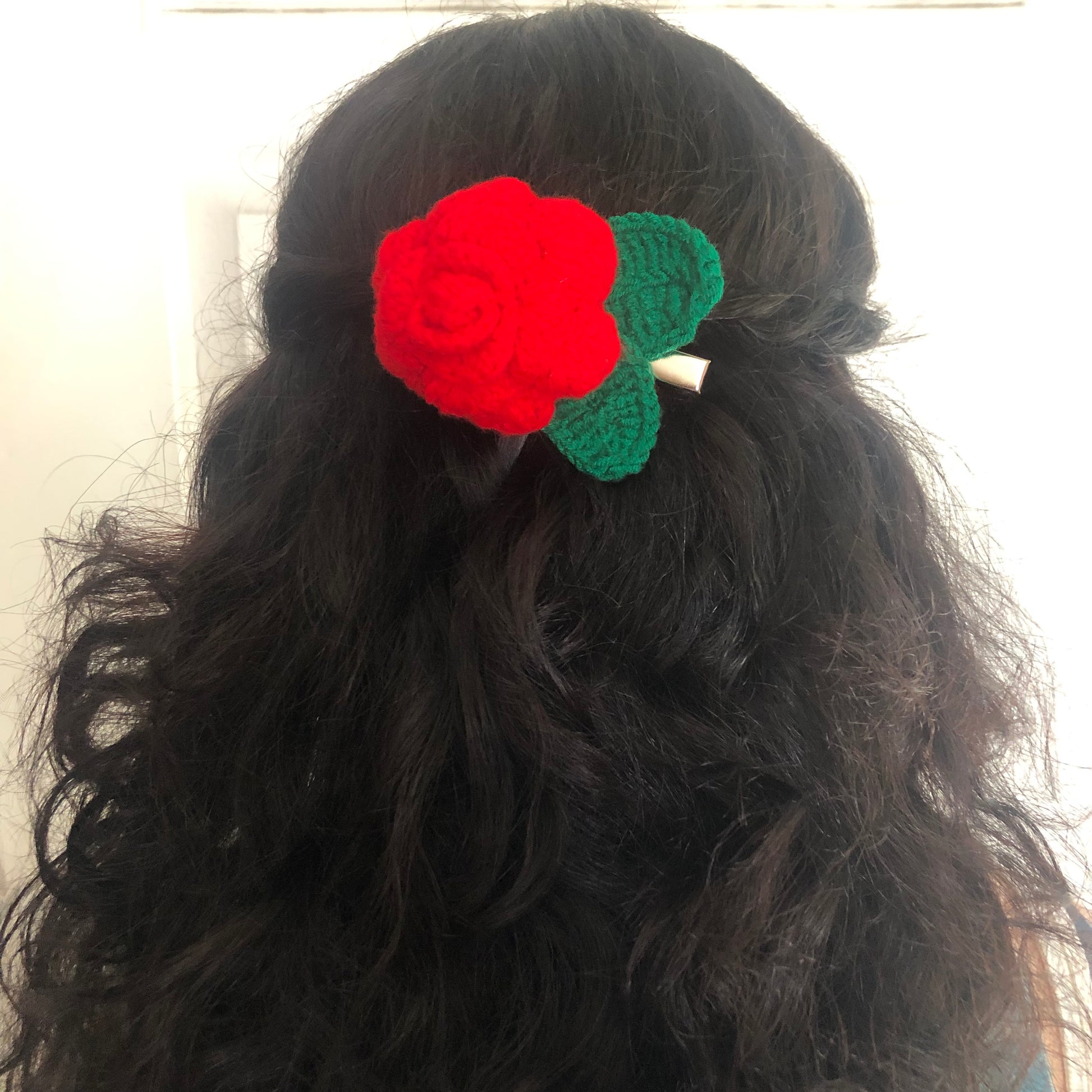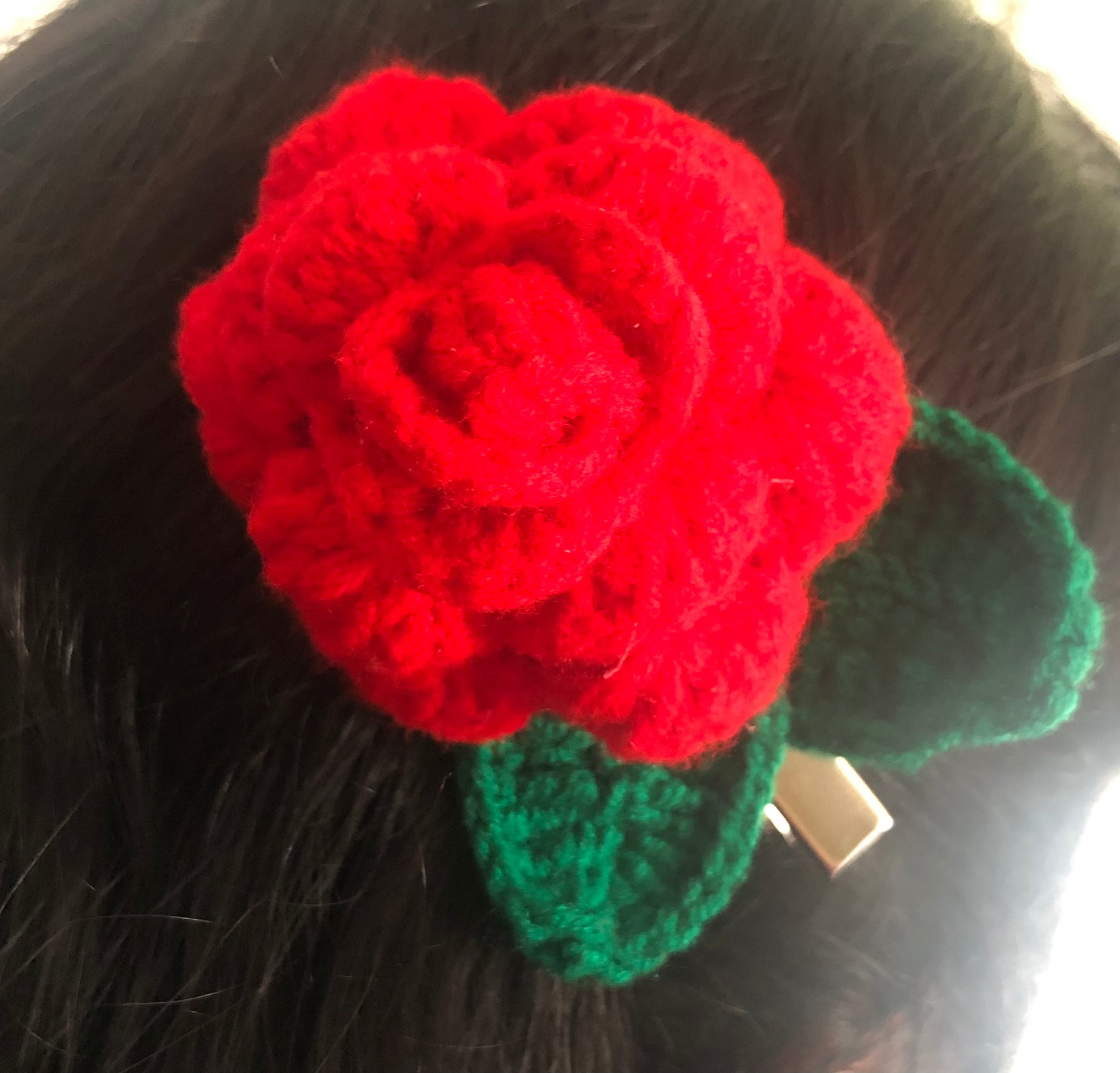 Crochet Red Rose hair clip
